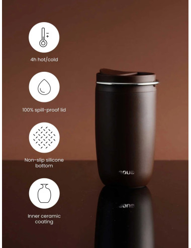 Equa-kahvikuppi on täydellinen kumppani aloittaa aamu kuumalla kahvilla, teellä tai kaakaolla. Equa-termoskuppien edut ovat: Valmistettu ruostumattomasta teräksestä * Lämpöeristetty (pitää kuumana 4h) * 100% ei vuoda * Sisällä keraaminen pinnoite parempaan makuun * Non-slip pohja