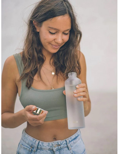 Kvaliteetsest borosilikaat klaasist Equa joogipudel. 100% lekkimiskindla korgiga veepudel. Pudelit võib pesta nõudepesumasinas. Valmistatud EU-s.